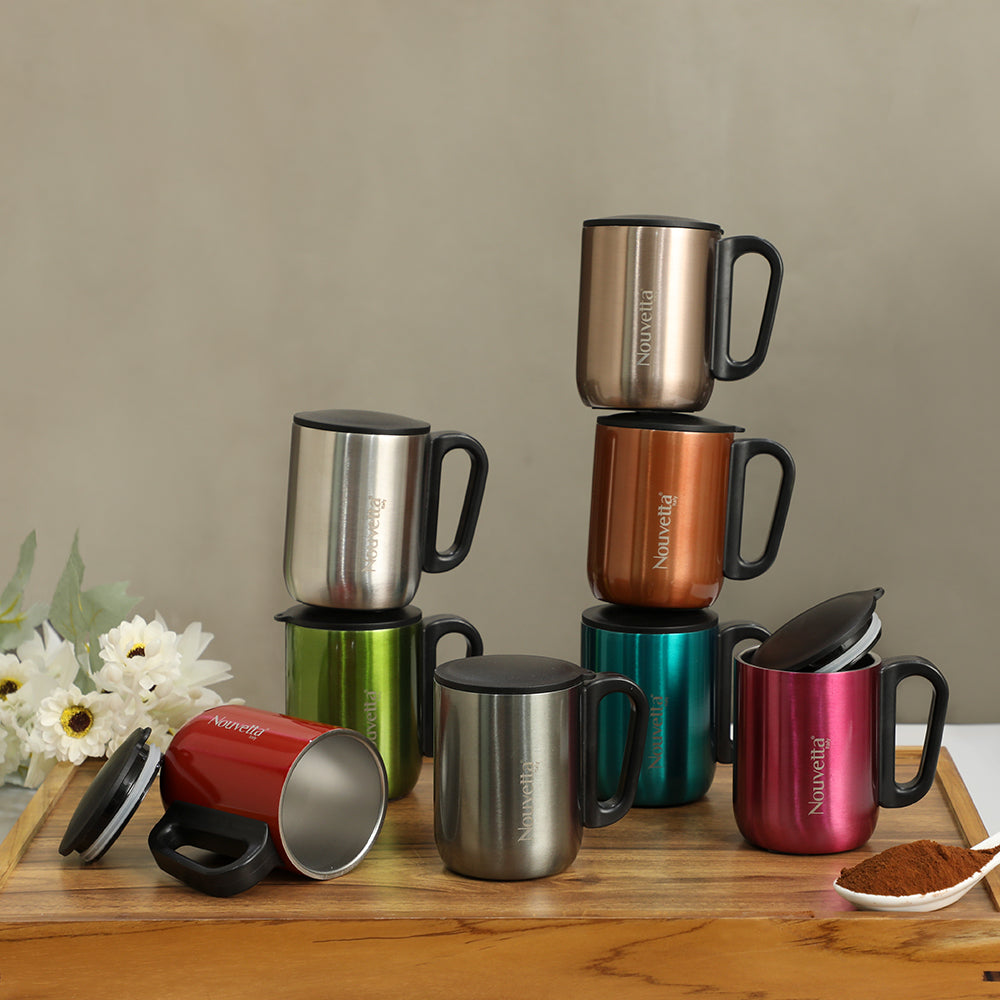 Available in four elegant colors—Blue, Copper, Pink, and Rose Gold—the mug’s sleek, modern design enhances any kitchen or office space. Its stainless steel body provides durability and a premium feel, while the round shape ensures a comfortable grip. The set of two mugs makes it ideal for sharing a beverage with a friend or loved one.