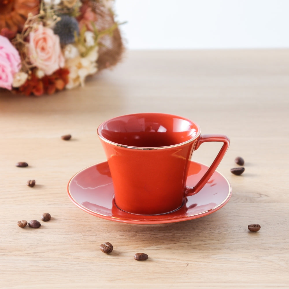 Yamasin - YCS2635 Cup And Saucer 160 Ml Set Of 6 Pcs With Gold Rim - Shine Red