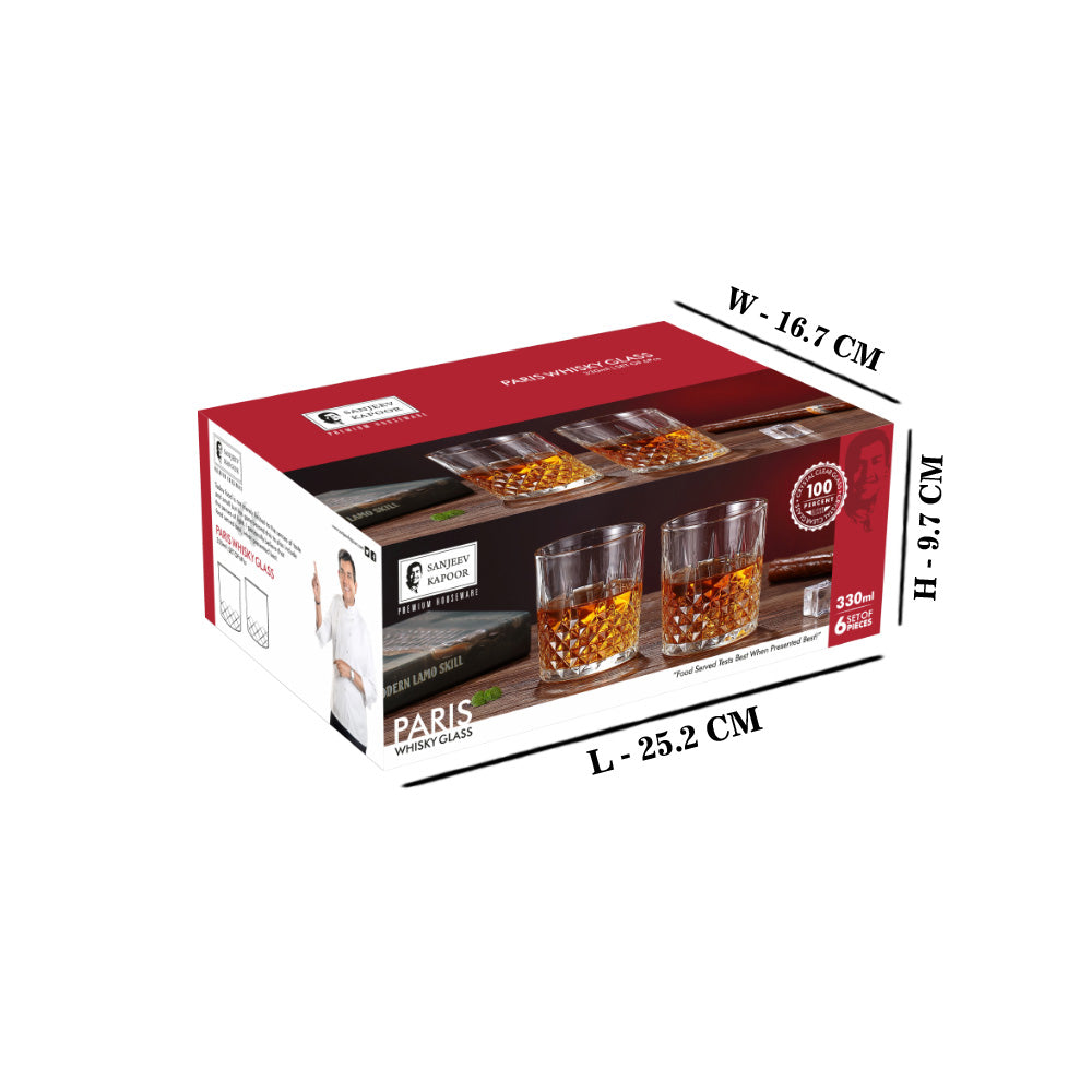 Sanjeev Kapoor - Paris Crystal Whisky Glass 330 ML Set of 6 PCS